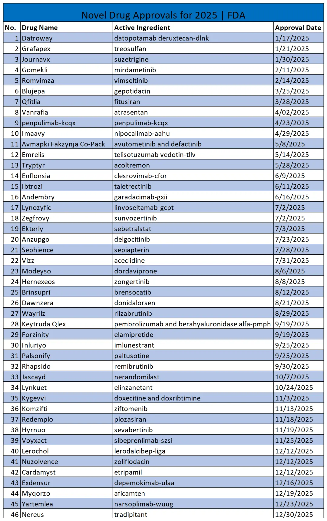 2025盘点:FDA批准的46款新药