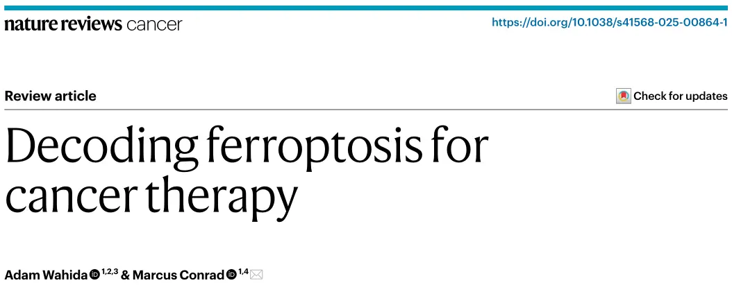 2025年10月10日,一篇发表于 Nature reviews cancer 期刊的论文探讨了铁死亡的生化基础、支持其在癌症生物学中作用的证据,以及合理化靶向疗法以诱导恶性肿瘤中铁死亡倾向状态的潜在策略,强化这些交叉领域的研究可能会带来基于铁死亡的创新治疗范式。跟T仔一起来快速浏览一下吧~ (私信T仔可获取原文噢)