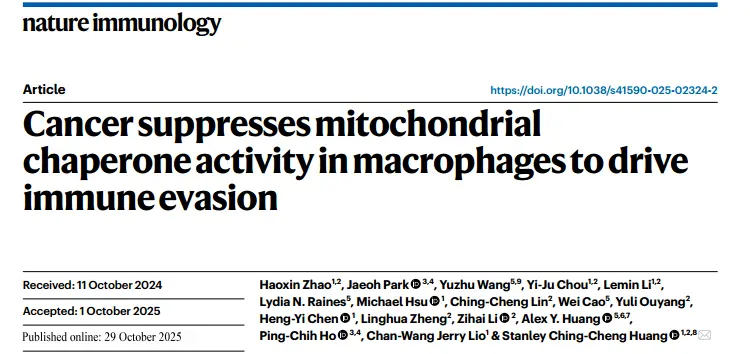 近期,一项发表于 Nature Immunology 题为Cancer suooresses mitochondrialchaperone activity in macrophages to drive immune evasion 的论文次揭示了肿瘤如何通过抑制巨噬细胞线粒体分子伴侣的活性,从代谢与表观遗传两方面共同推动免疫抑制,从而实现免疫逃逸。这一发现为改善肿瘤免疫治疗效果提供了全新思路。