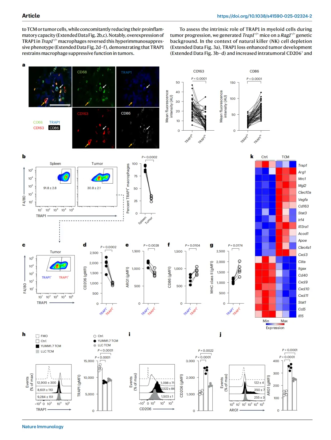 研究团队聚焦于一种名为TRAP1 (TNF Receptor–Associated Protein 1)的线粒体分子伴侣。由于目前关于TRAP1在免疫细胞中的研究仍十分有限,研究人员首先分析了其在不同免疫细胞类型中的表达谱。结果显示,TRAP1 缺失与肿瘤中的免疫抑制密切相关,无论在人类肿瘤还是小鼠模型中,TRAP1下调都会促进巨噬细胞的免疫抑制表型形成,提示TRAP1是调控肿瘤免疫微环境的重要代谢与免疫平衡因子。