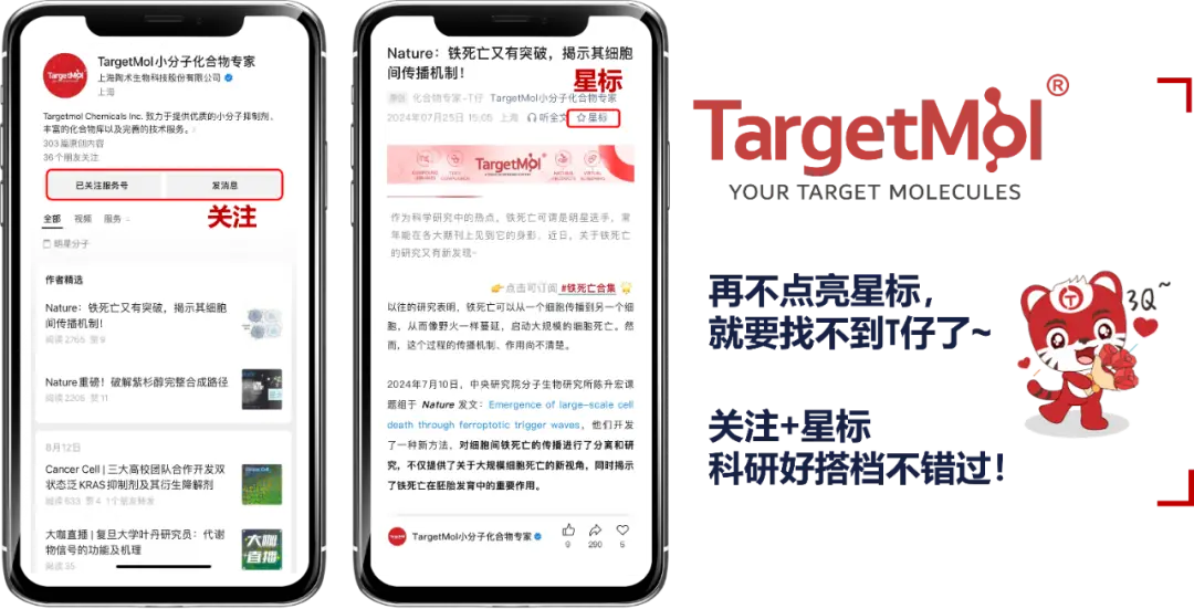 C1 对高表达 Myc 的癌细胞具有较高的细胞毒性,而对低表达 Myc 的癌细胞影响较小,且能选择性下调多种 Myc 靶基因 的表达。值得一提的是在研究过程中,团队使用了 TargetMol 的产品 EOAI3402143(G9)