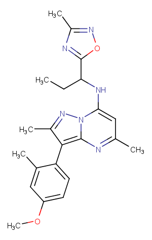 Pexacerfont (BMS-562086) 是一种选择性的促肾上腺皮质激素释放因子 (CRF1) 受体拮抗剂,作用于人 CRF1 受体,IC50 为 6.1±0.6 nM。
