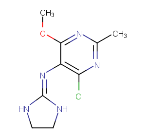 Aganodine is a guanidine that activates presynaptic imidazoline receptors. Aganodine inhibits the presynaptic release of norepinephrine through its agonism at imidazoline receptors.